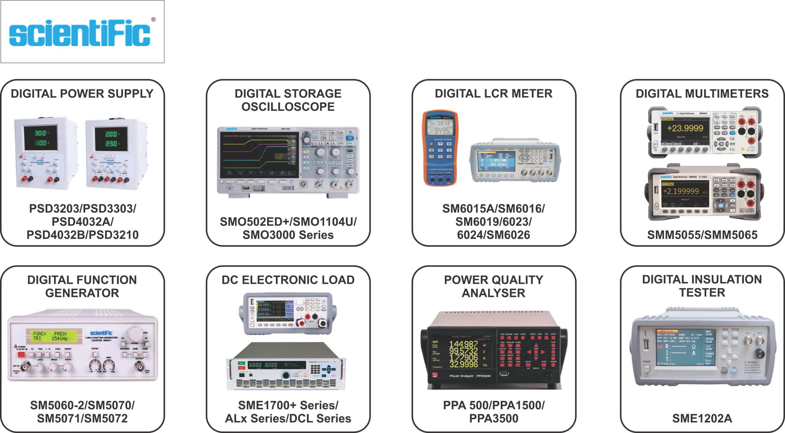 We specialize in a wide range of precision instruments including oscilloscopes, digital multimeters, power supplies, clamp meters, solar power meters, insulation testers, and more. Our portfolio features advanced diagnostic tools from leading global brands, carefully selected to deliver accuracy, reliability, and safety. Whether you’re evaluating performance, ensuring compliance, or conducting high-precision tests, Tanvi Enterprises offers dependable equipment backed by expertise and a commitment to excellence.
