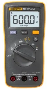 Designed for basic electrical tests, the Fluke 101 digital multimeter offers reliable measurements for residential/commercial electricians and heating and air conditioning technicians. This small, lightweight multimeter fits comfortably in your hand but is rugged enough to withstand daily use for years to come. When it comes to professional-grade affordable multimeters, the Fluke 101 digital multimeter is your best choice.